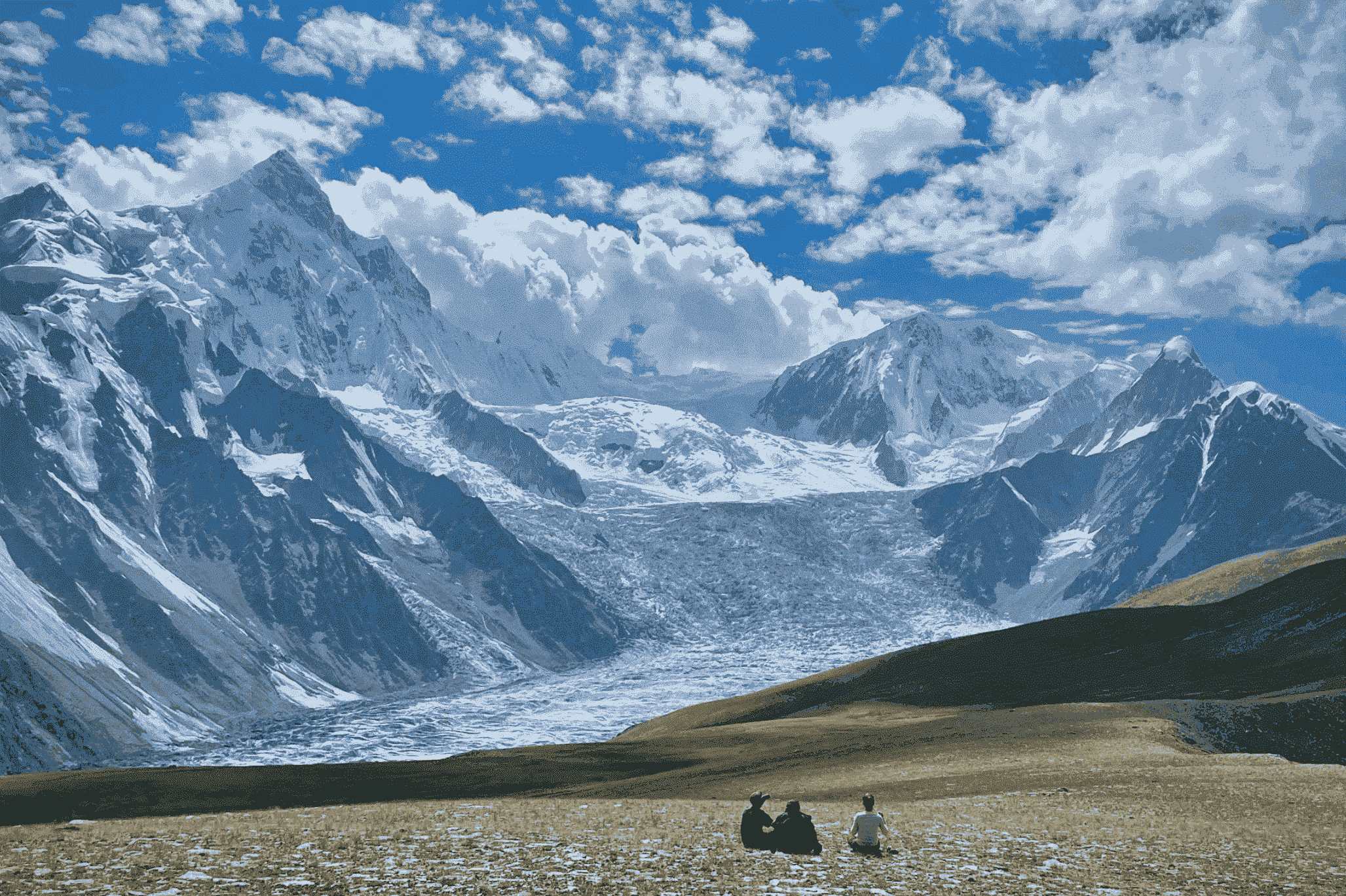 In addition to a pre-acclimatization tour - which I described in the previous article - my girlfriend and I selected two larger tours. One is the broad Patundas ridge with an incredible view, whose high mountain pastures lie at 4,200-4,300 meters and rise between two beautiful glaciers. The other leads to the country's highest lake, Rush Lake at 4,700 meters. During the tours, we crossed gigantic glaciers six times and wandered for long hours in the glittering ice maze. Because of the glacier guides, we also had to hire local guides who recognized themselves on the back of the ice.